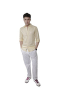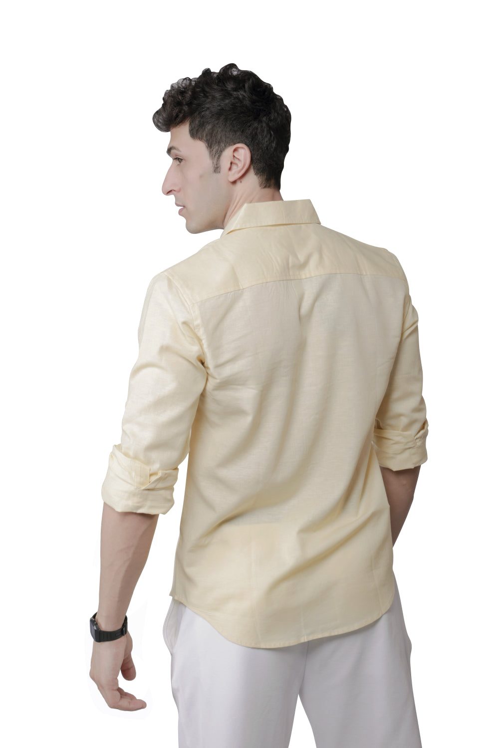 The carefully selected linen-cotton blend offers the best of both worlds: the natural breathability and subtle texture of linen, combined with the softness and ease of care of cotton. This ensures a comfortable wear experience, ideal for both warm days and cooler evenings. The long sleeves and versatile design make it a wardrobe staple, easily paired with chinos, jeans, or tailored trousers.