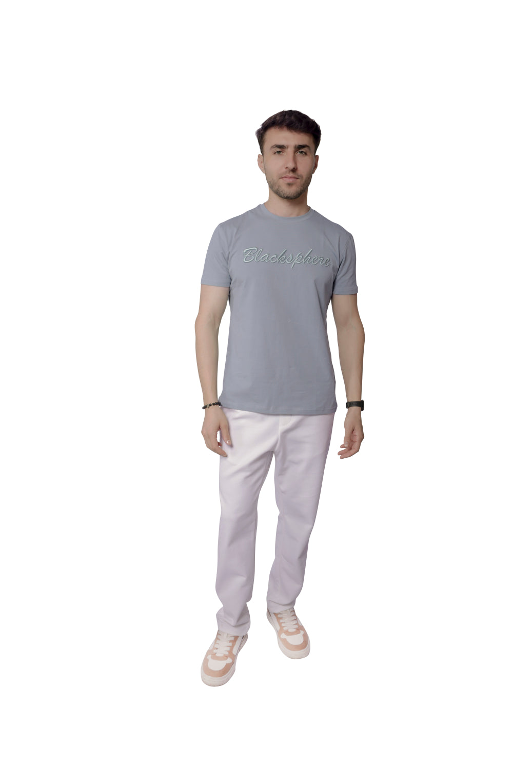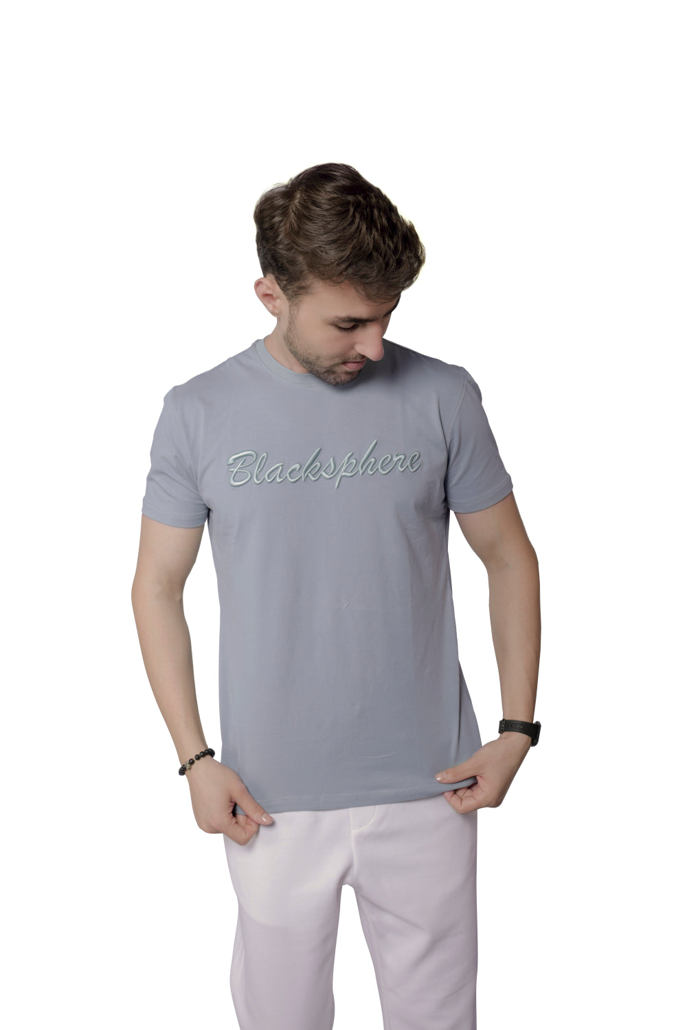 The tshirt features a classic regular fit, offering a comfortable and flattering silhouette for all body types. The design is centered around a bold, three-dimensional (3D) embroidered brand name on the chest. The raised embroidery creates a tactile experience and a premium aesthetic, making it a standout piece in any wardrobe.