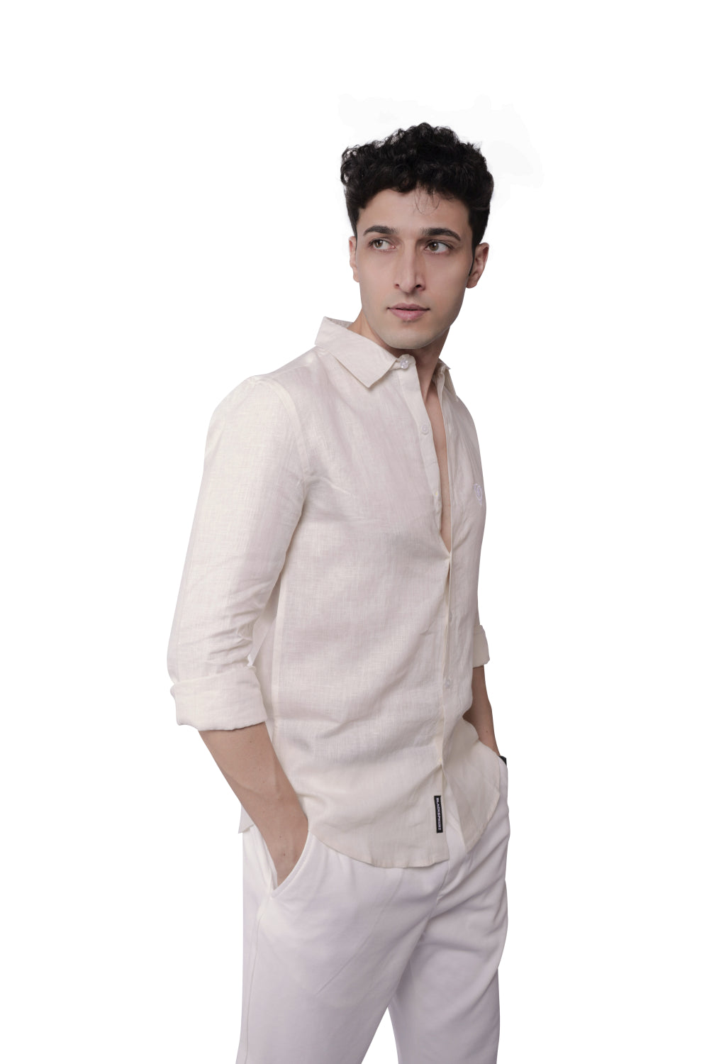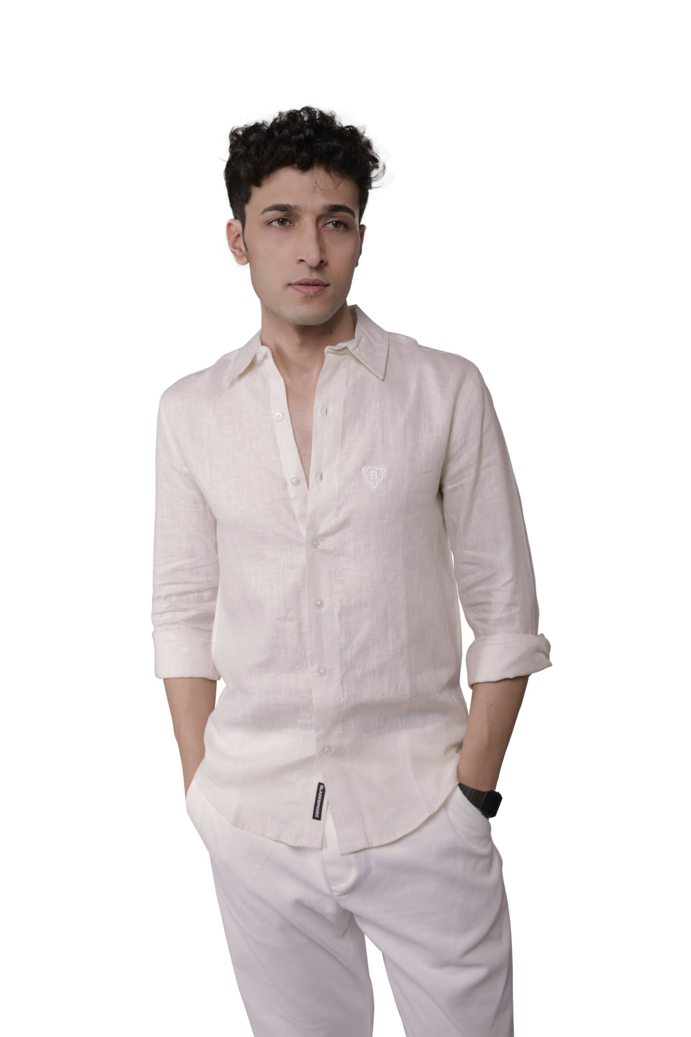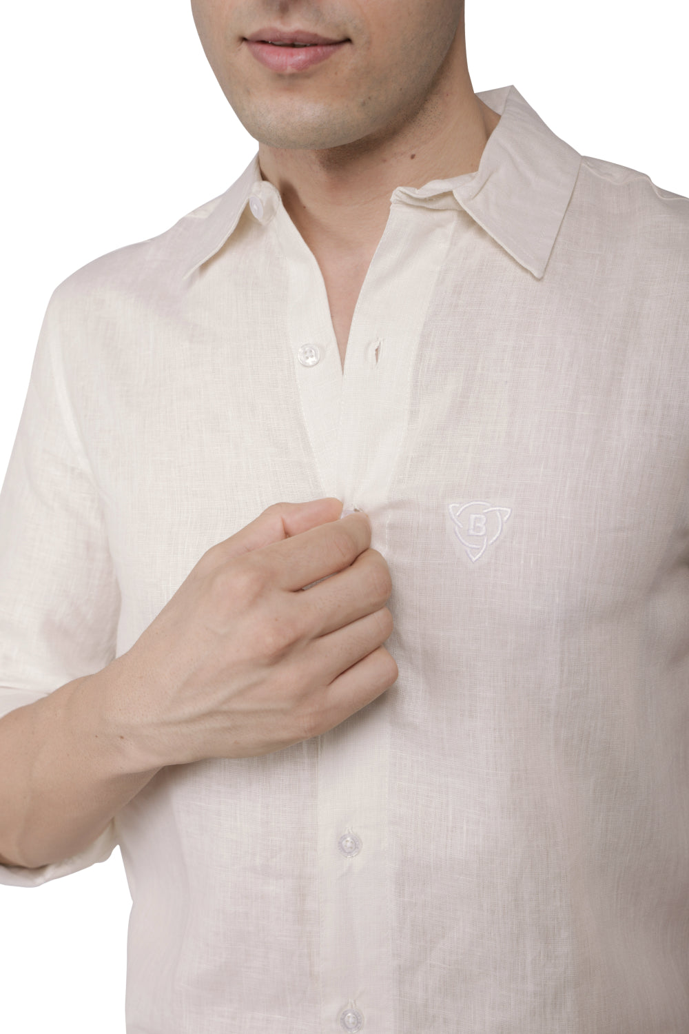 A subtle yet distinguished brand logo is delicately embroidered on the chest, adding a touch of sophistication and brand identity without overpowering the shirt's clean aesthetic. This detail enhances the shirt's timeless appeal, making it a versatile choice that can be dressed up or down with ease. The Timeless Linen Shirt is designed for those who appreciate quality, comfort, and a classic look that transcends fleeting trends.